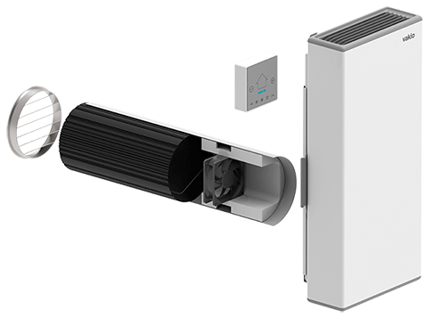 VAKIO обеспечивает постоянный воздухообмен и комфортную температуру в помещении. Фильтр класса F6 или F7 избавляет от пыли, пуха, пыльцы и гарантирует чистый воздух.
